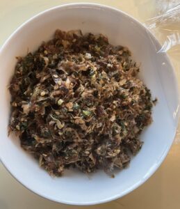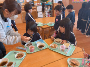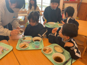 給食室にお願いして、おかかとゴマを混ぜた大根の葉のふりかけを作ってもらいました🌟