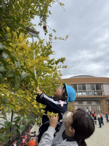 でもやっぱり落ちてくるまで待ちきれない!と取りたがる子どもたち😆