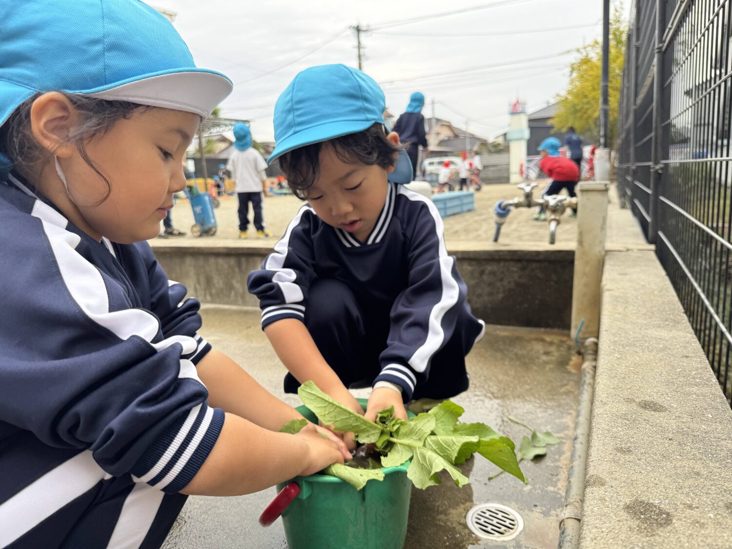 野菜の泥落としも「お手伝いする!」とやる気いっぱいです🤣