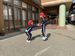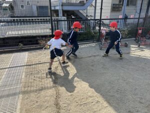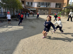 園庭では、しっぽ取り鬼ごっこが盛り上がっています💨