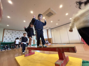 平均台も慣れてきたら、マットで少し傾斜をつけてチャレンジしました🙂