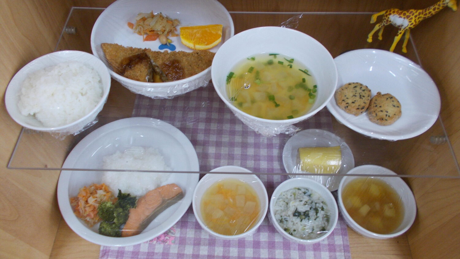 じゃこ豆サラダにはちりめんじゃこ、大豆の水煮、キャベツ、人参、コーン、トマトの食材を使用しています。ちりめんじゃこはカリカリになるまでフライパンで炒めて混ぜるので、味がしっかりとついていて美味しかったです。