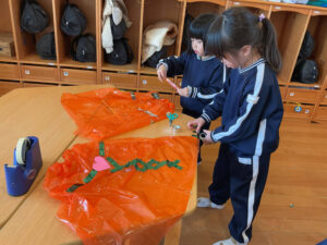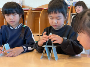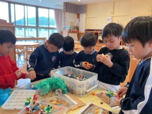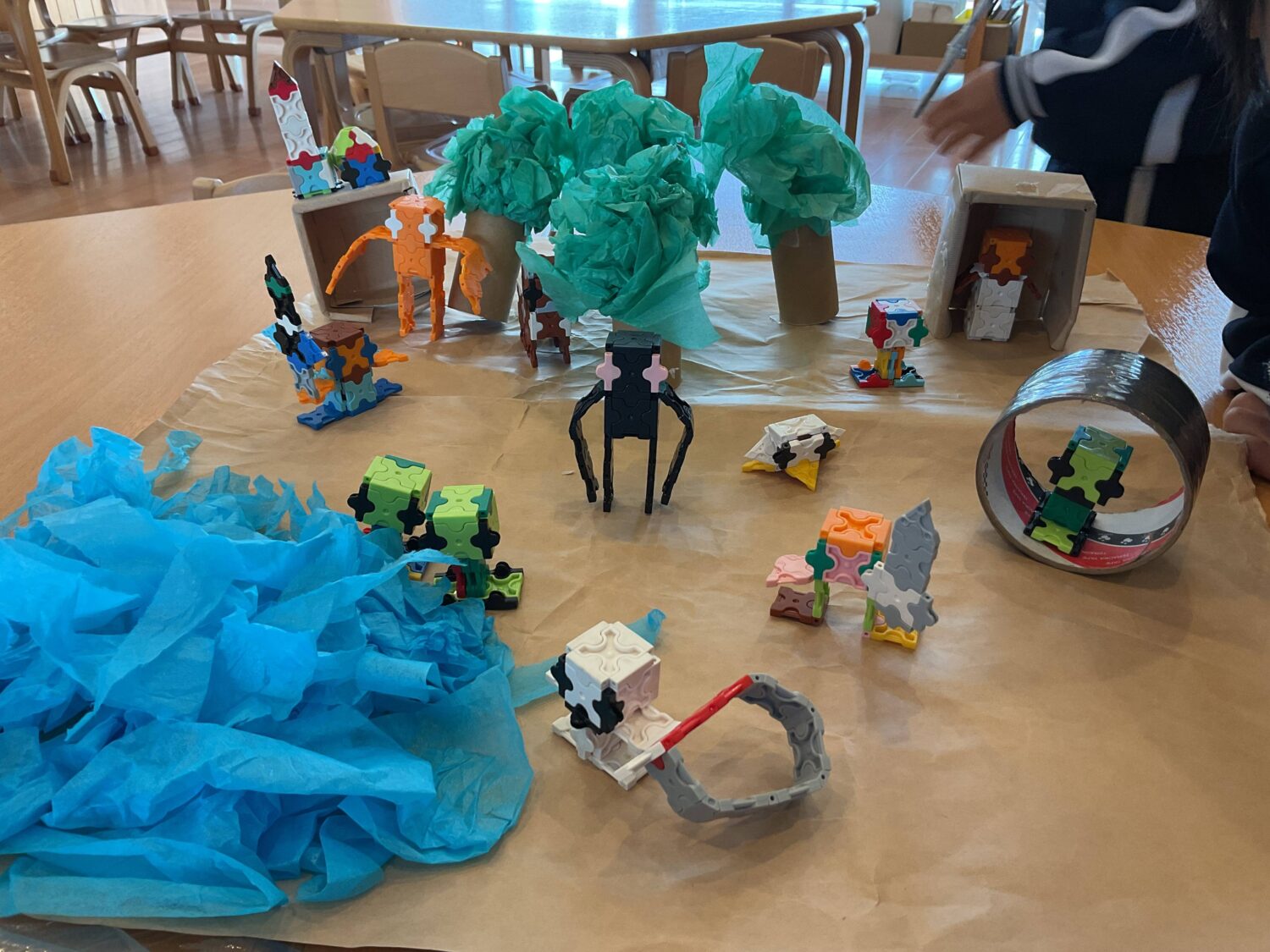 お気に入りの動物やキャラクターをそれぞれ作り、見せ合いながら集中して進めていました♪
