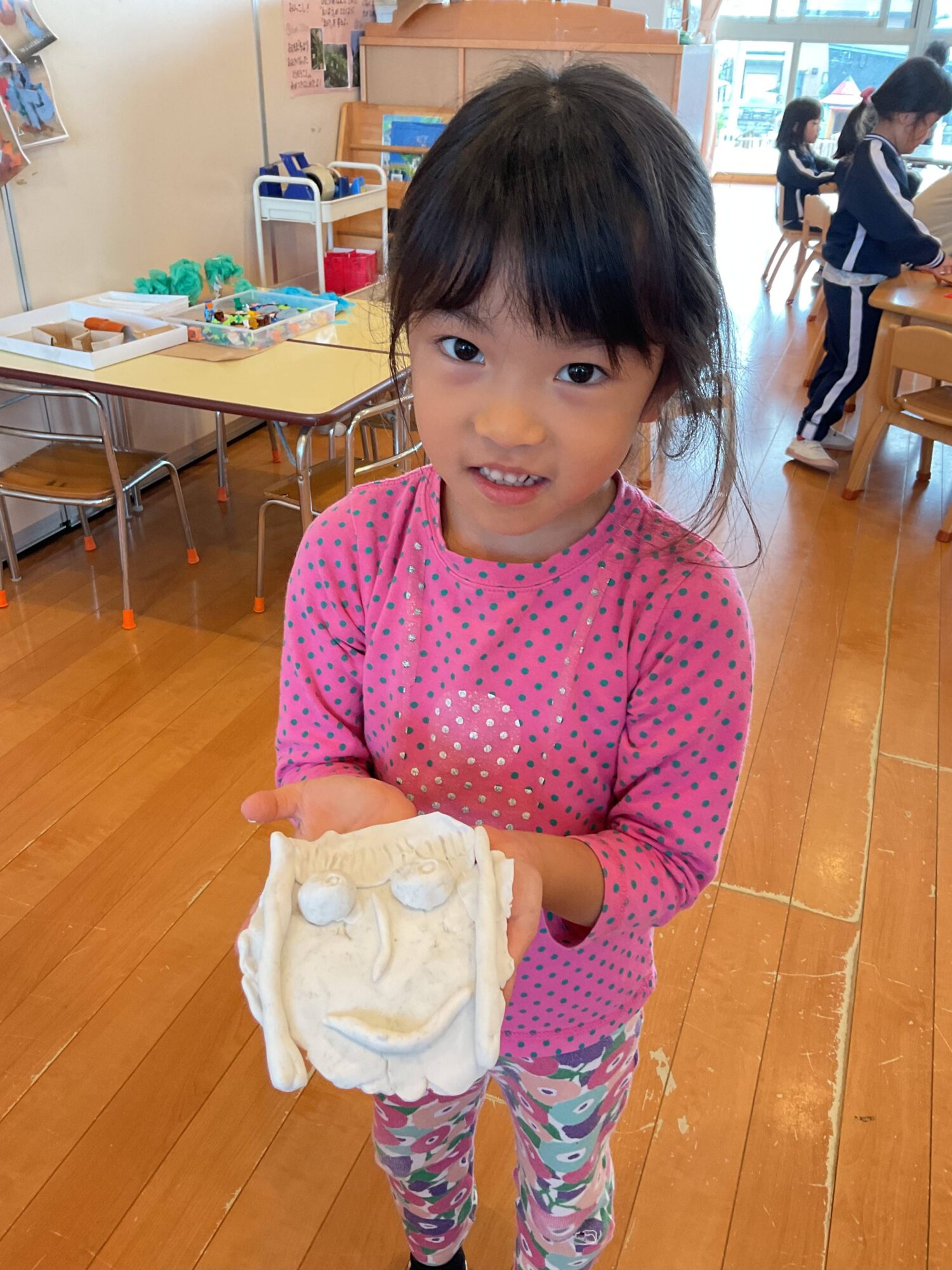 「粘土で大好きなママの顔を作ったよ!🥰」