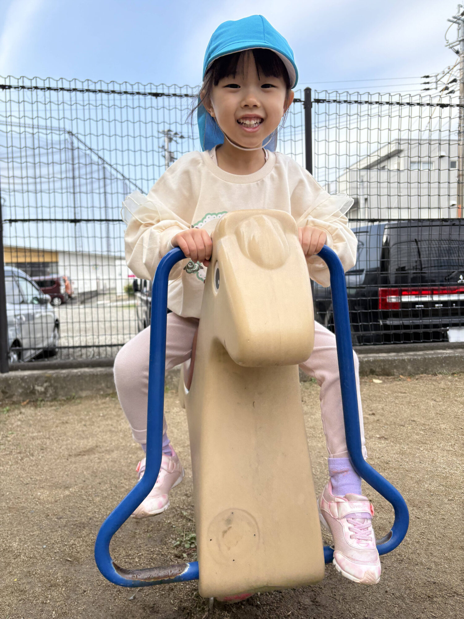 自分の力で乗るのは難しかったから、先生に乗せてもらったよ😘