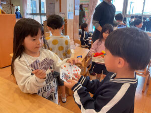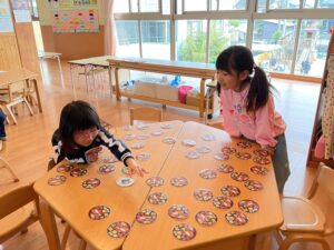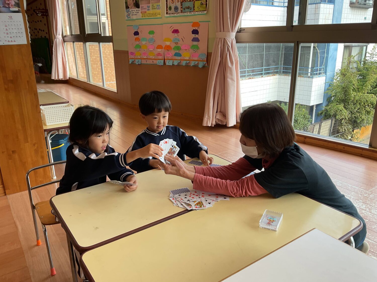 枚数の少ない絵合わせから始めた「カードめくり(神経衰弱)」も、今では枚数の多いトランプでも楽しみながら取り組めるようになりました😊✨