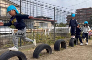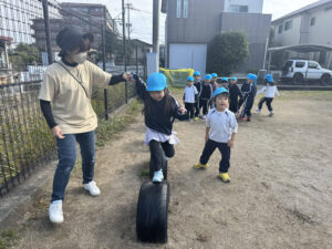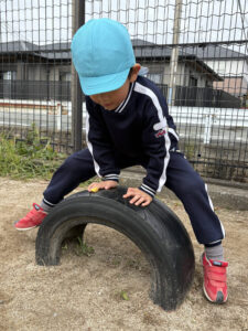 跳び箱代わりにタイヤをジャンプ🤭💗