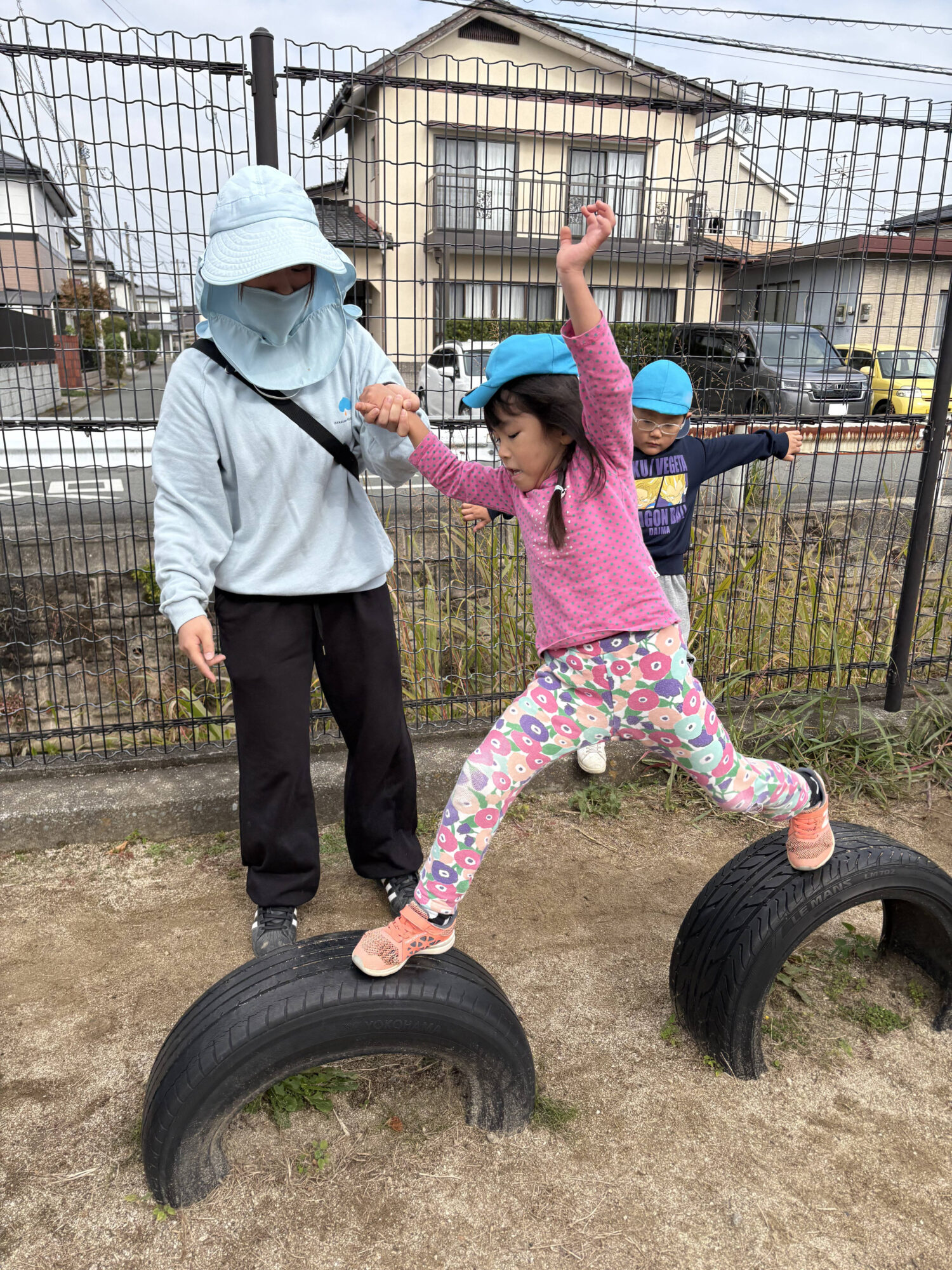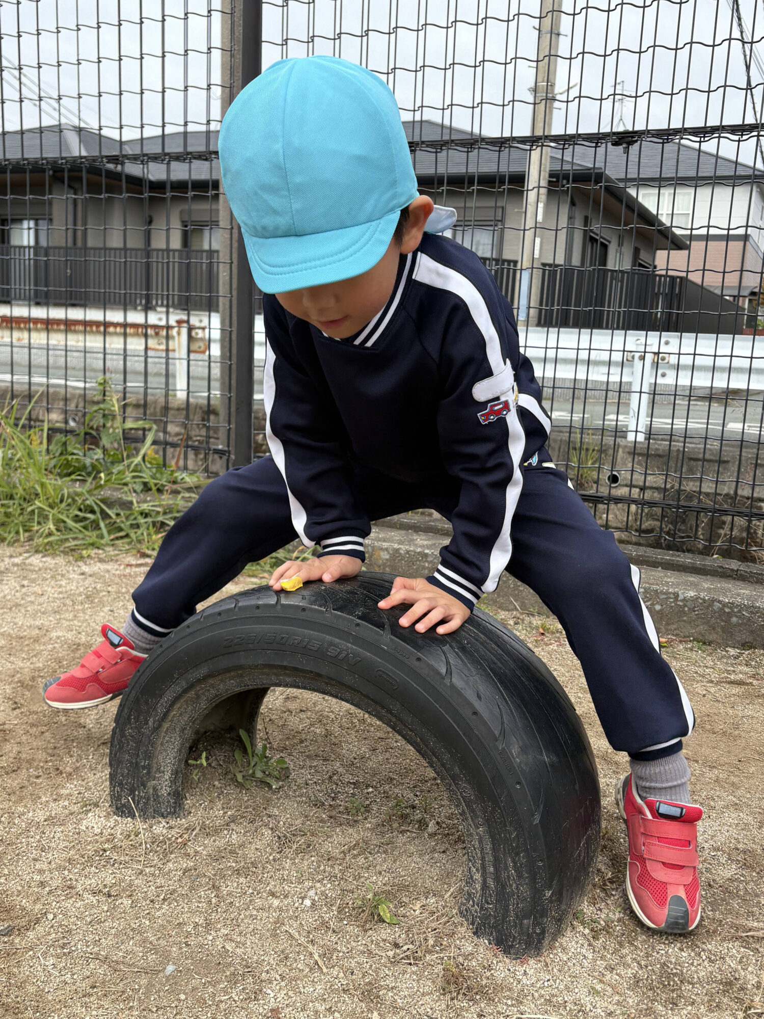 公園から帰る頃には、怖がらずに一人でタイヤに立って渡れるようになっていました☺️✨️