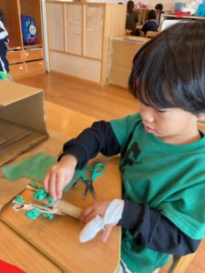 おままごとで使うドレスを作るお友だちは、細かなデザインにこだわりながら仕上げに夢中…👗💖