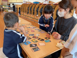 お母さんも一緒に、みんなでカルタ取りをしたよ!