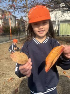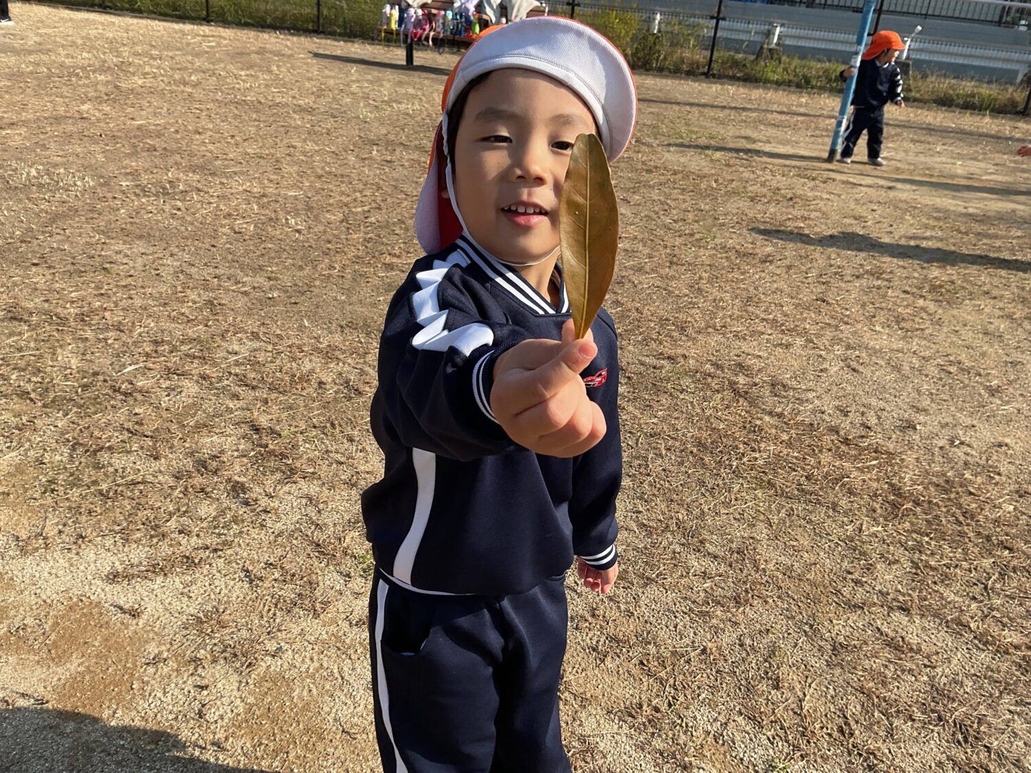 「きれいな形の葉っぱ🍂みつけたよ〜」