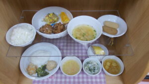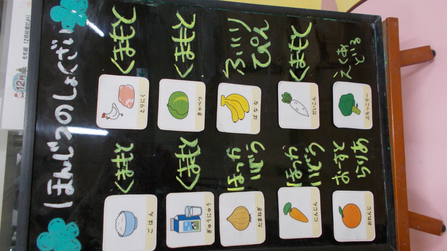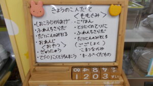 献立に変更があります。もも組の午前食は鶏肉の照り煮にかわっています。