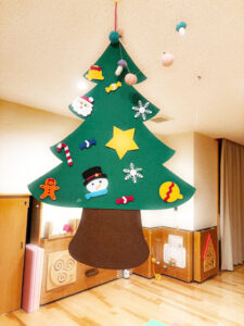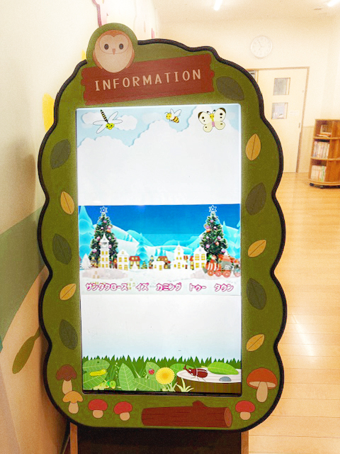 ホールのディスプレイからは軽快なクリスマスソングが流れ、園内は暖かい雰囲気に包まれています。