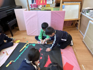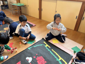 本物のプクプクシールみたいに作ろうと自分たちでアイディアを出しながら、素材を活かし作る姿に感心しました🥰