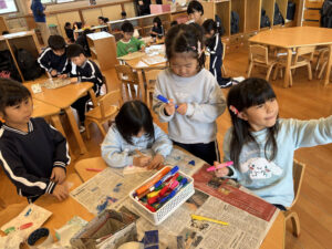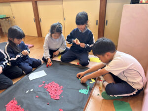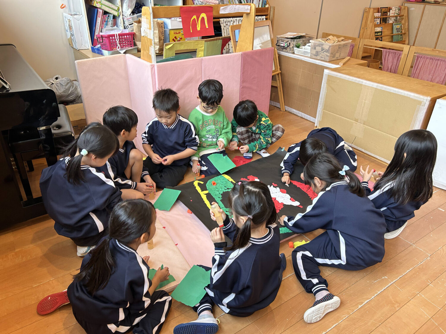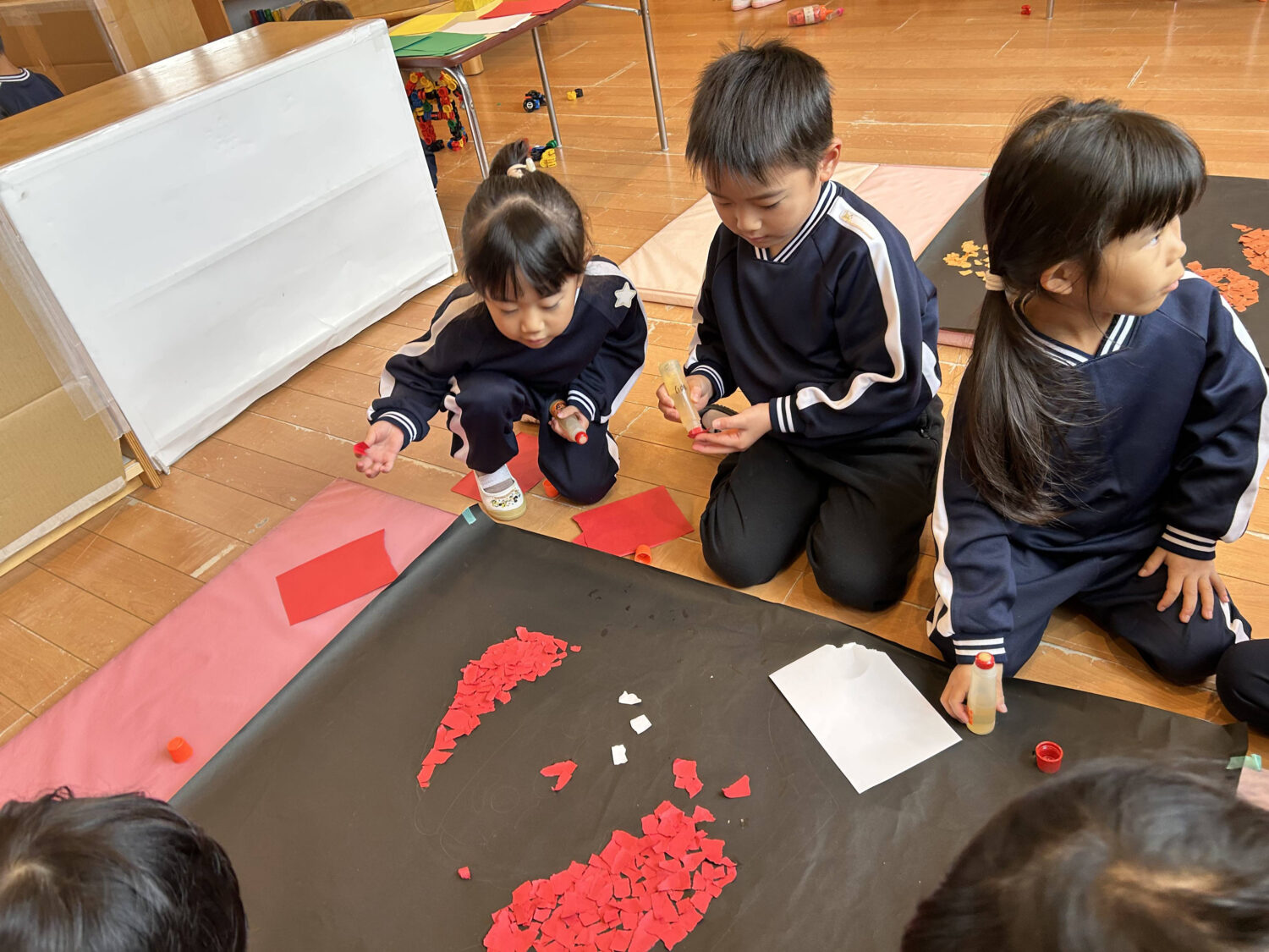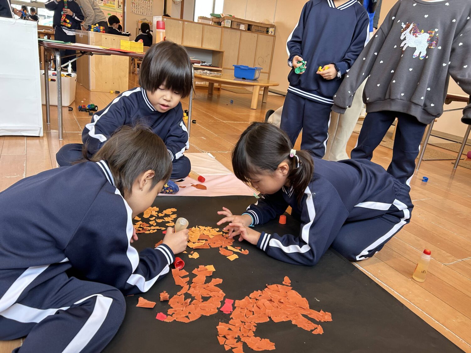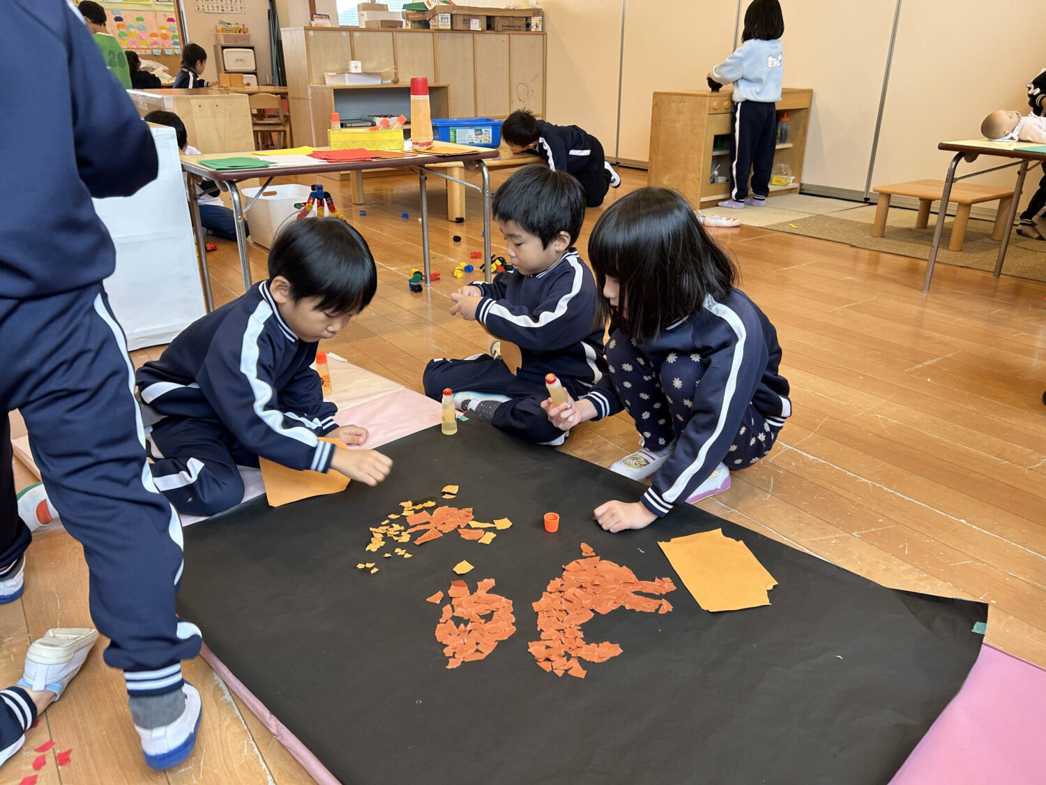 グループごとに分かれちぎり絵に取り組んでいます😊