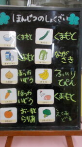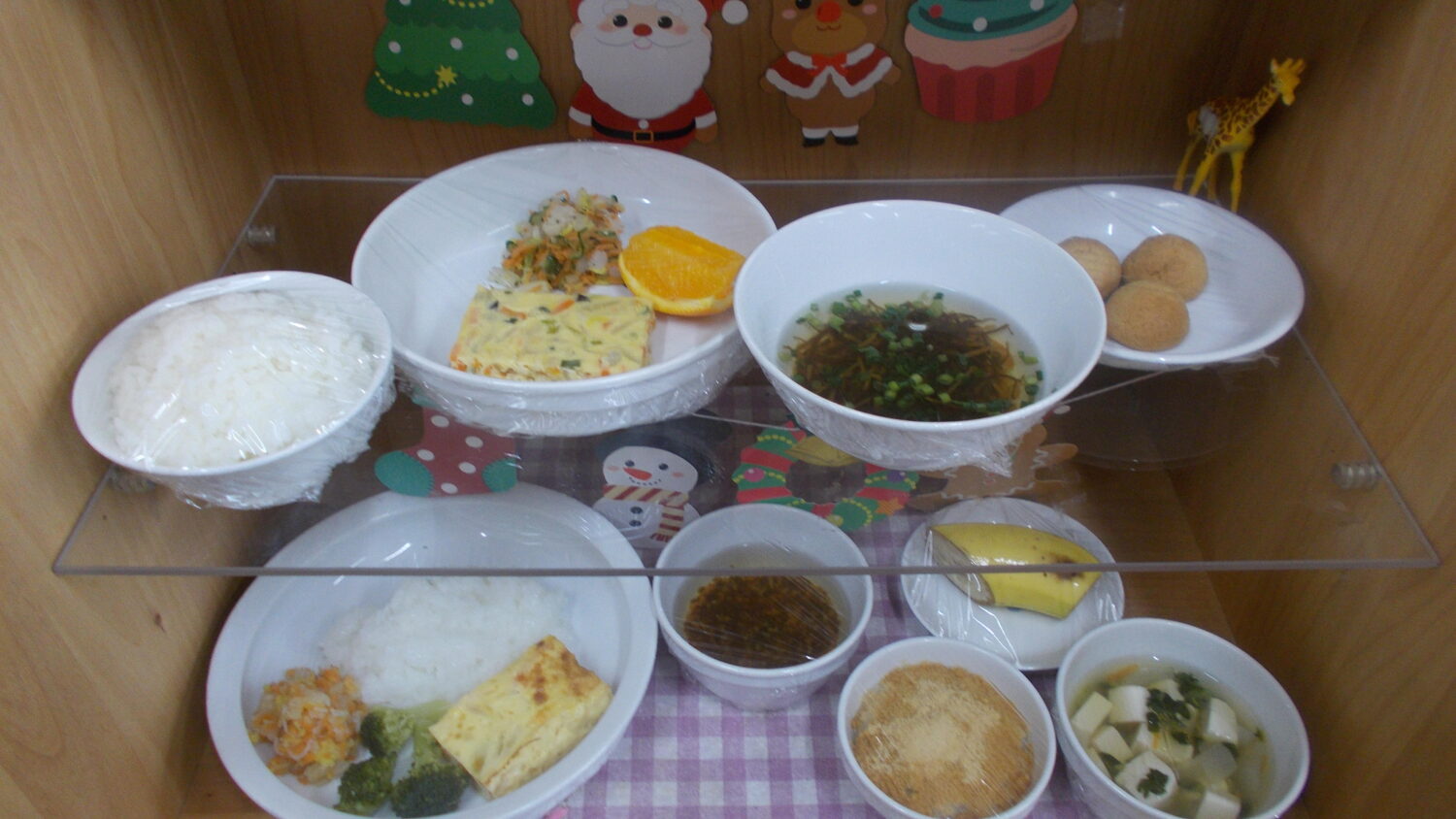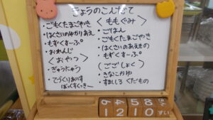 献立に変更があります。副菜が白菜のゆかりあえ、おやつがアイスボックスクッキーにかわっています。