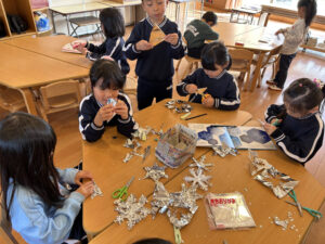 折り方や切り方を伝えるとすぐに覚え、繰り返し楽しんでいます!
