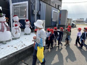 マフラー🧣やおしゃれな帽子をつけた可愛い雪だるまにみんな釘付けでした😍