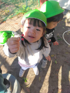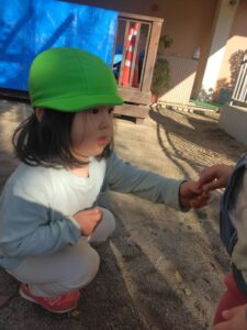 地面に落ちていた木の実を拾ってお友だちにあげている子もいました。