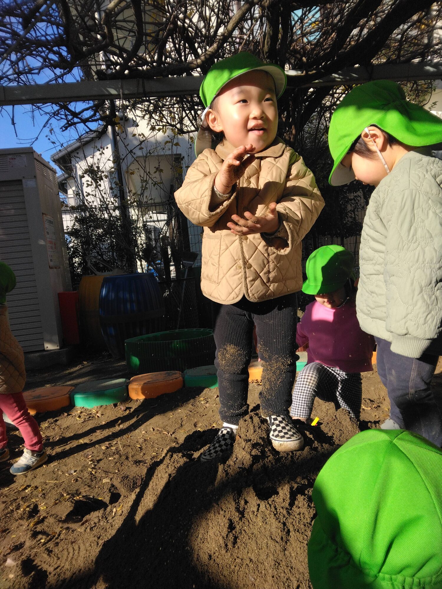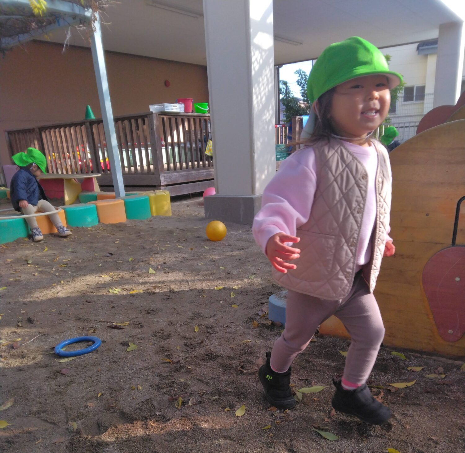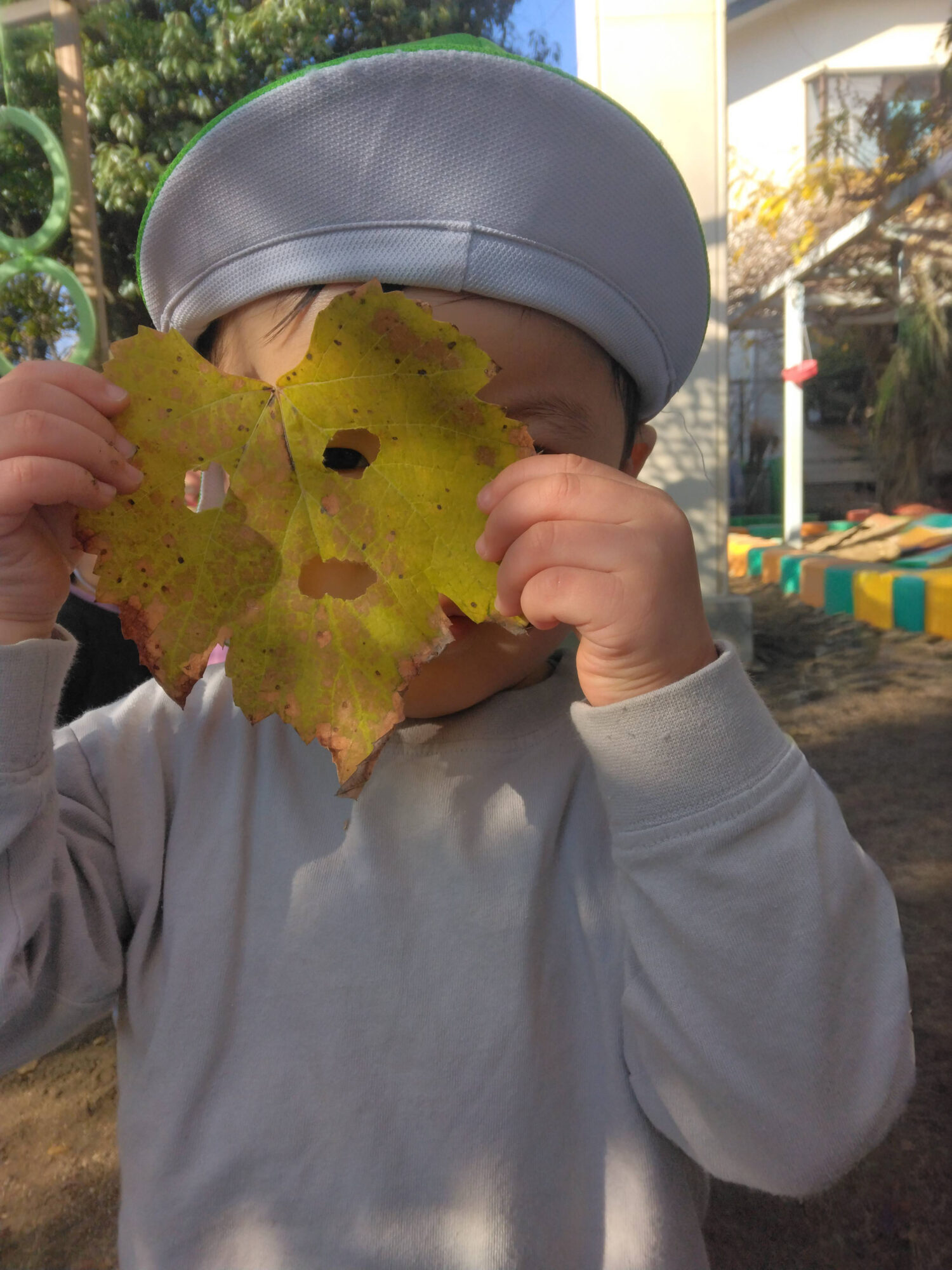 第二園庭には まだまだ”秋の名残り”があり、子ども達は移りゆく自然を全身で味わっていました。