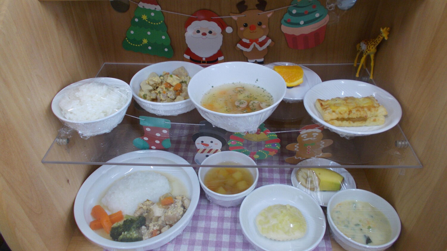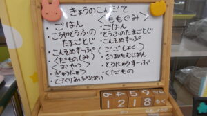 献立に変更があります。もも組の午後食がさつま芋蒸しパン、豆乳のスープに変わっています。