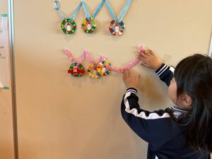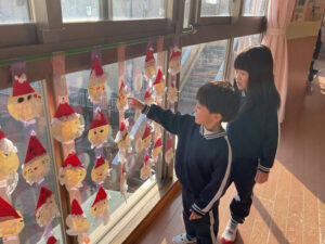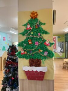 のチャレンジタイムで作ったサンタは、ばら組の前に飾りました🌲