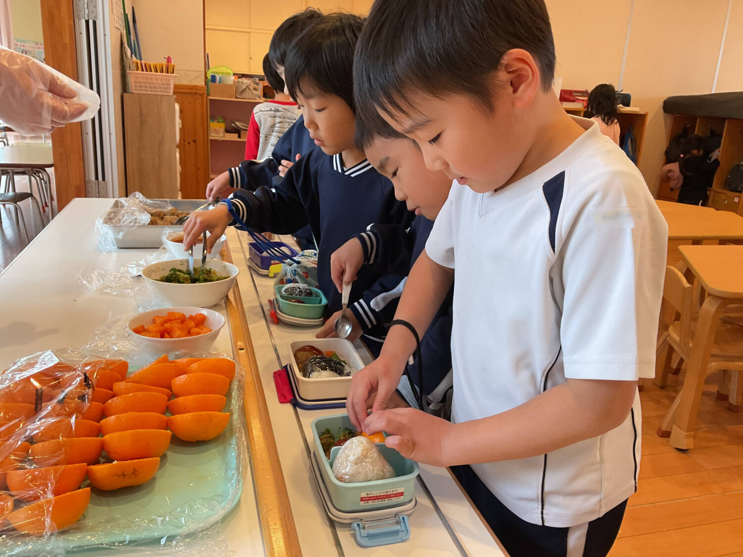 順番を守って、みんな手際よくお弁当箱に詰めていきます。