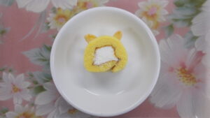 未満児さんはロールケーキにシスコーンで耳をつくっています。