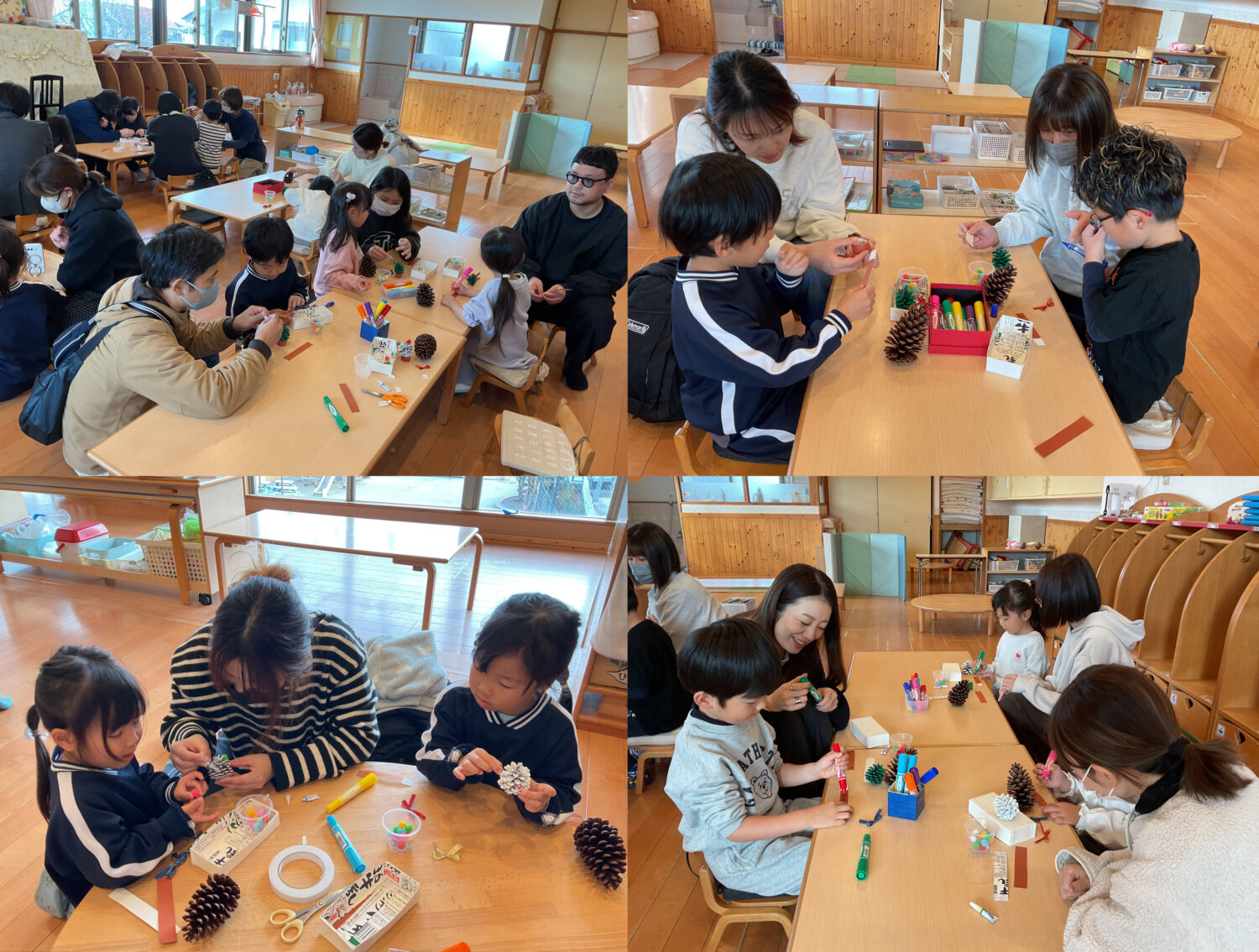 その後は、親子で装飾作りの共同作業…どちらかと言うと保護者の方が一生懸命なグループも😅