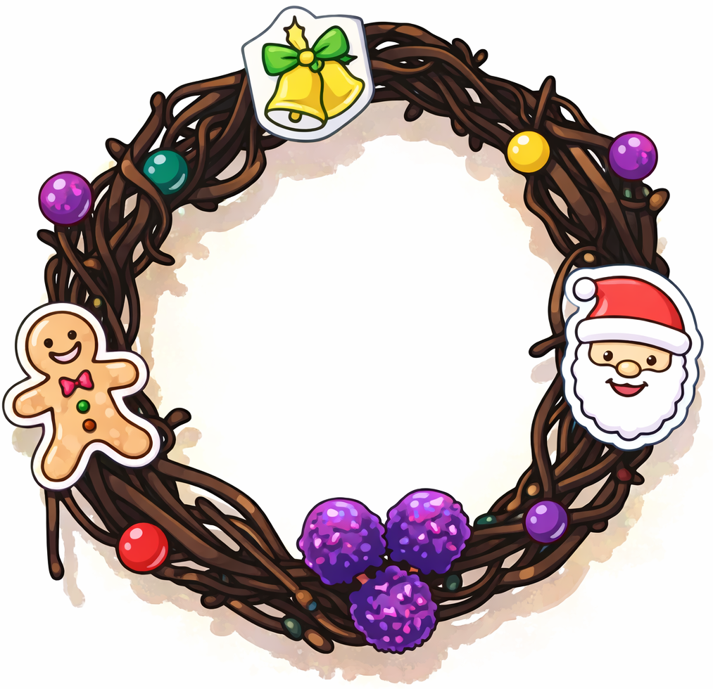 芋づるの素材に、イラストやモールなどの飾りを施して、リースが出来上がっていきます。
