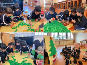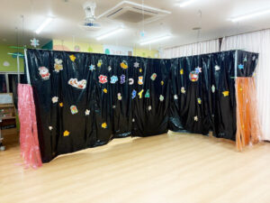 この日のために以上児3クラスでは力を合わせて装飾づくりをがんばりました。