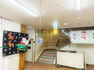 1階ホールには、プレゼントを手にしたサンタクロースが待機する「お楽しみトンネル」や