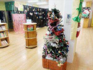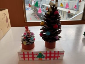 このコーナーは、松ぼっくりにいろんなデコレーションを施してクリスマスツリー🎄を作るコーナーです。