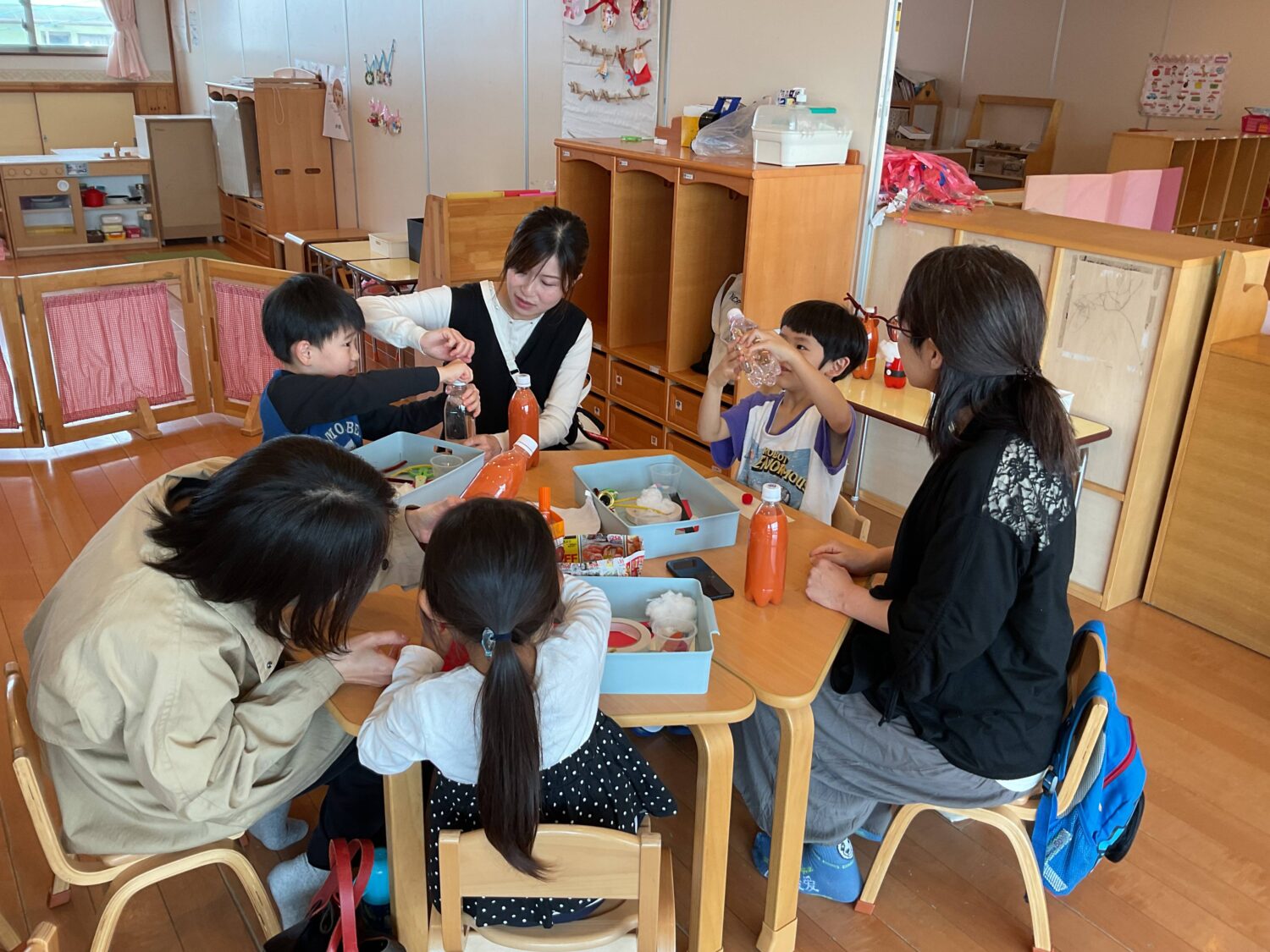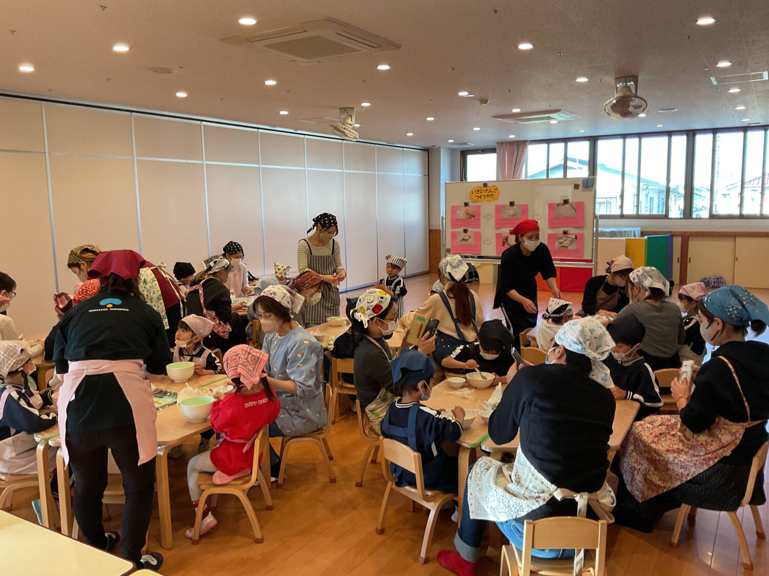 このイベントは、保護者の方をご招待して、5つのコーナーに分かれて園児と一緒に調理や制作を楽しむイベントです。