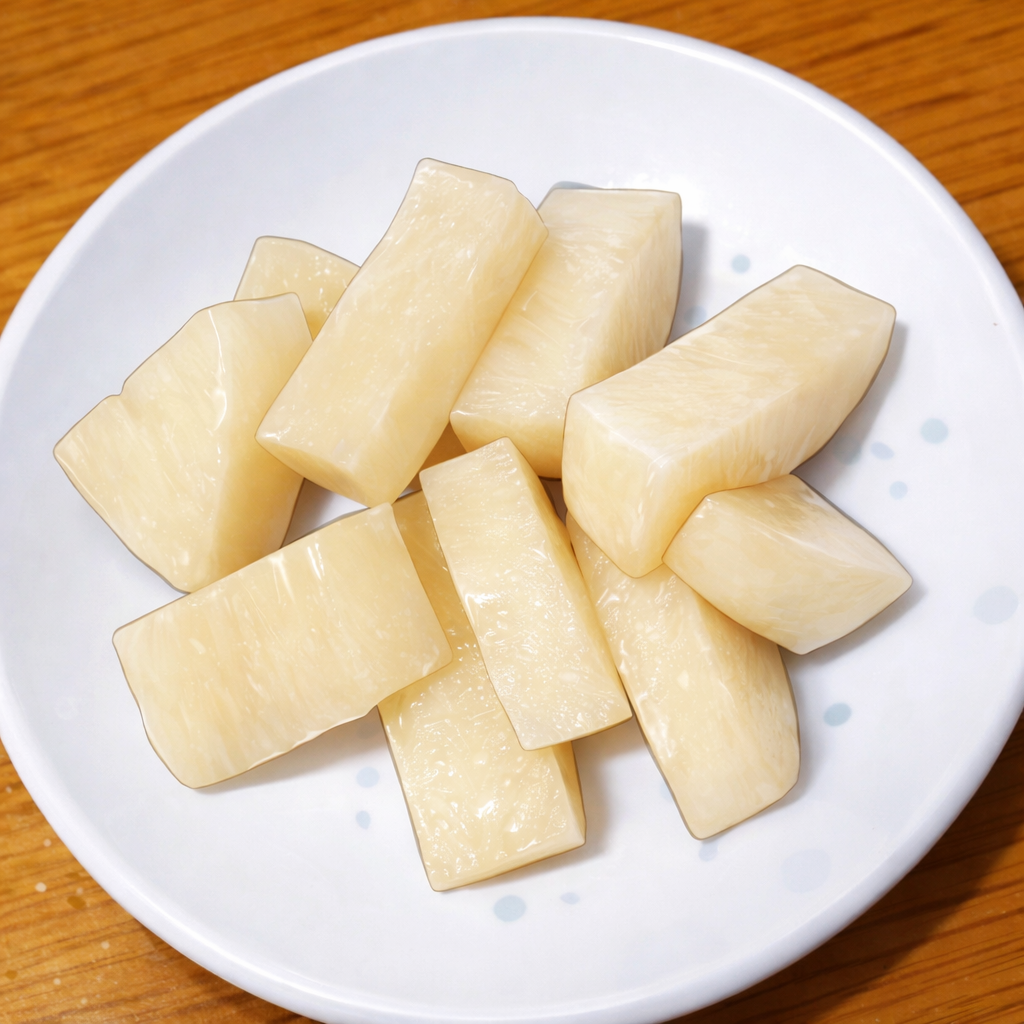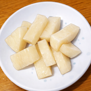 一方、すりおろした大根の方は片栗粉、鶏ガラを混ぜて、給食室で焼いてもらいました!