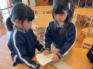 「お隣へ~ ♪」の歌を歌いながら、袋をお隣に渡していき、ばら組さんみんなで その重さを体感しました!