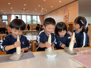 少し大根の辛みを感じた子もいたようで、大人の味を知った ばら組さんでした😆笑