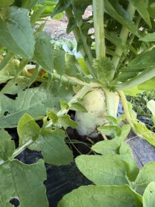 1月末ごろの収穫を考えていましたが、ぐんぐん大きくなり、青首が見えてきました。