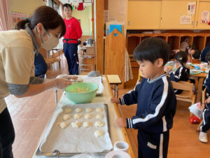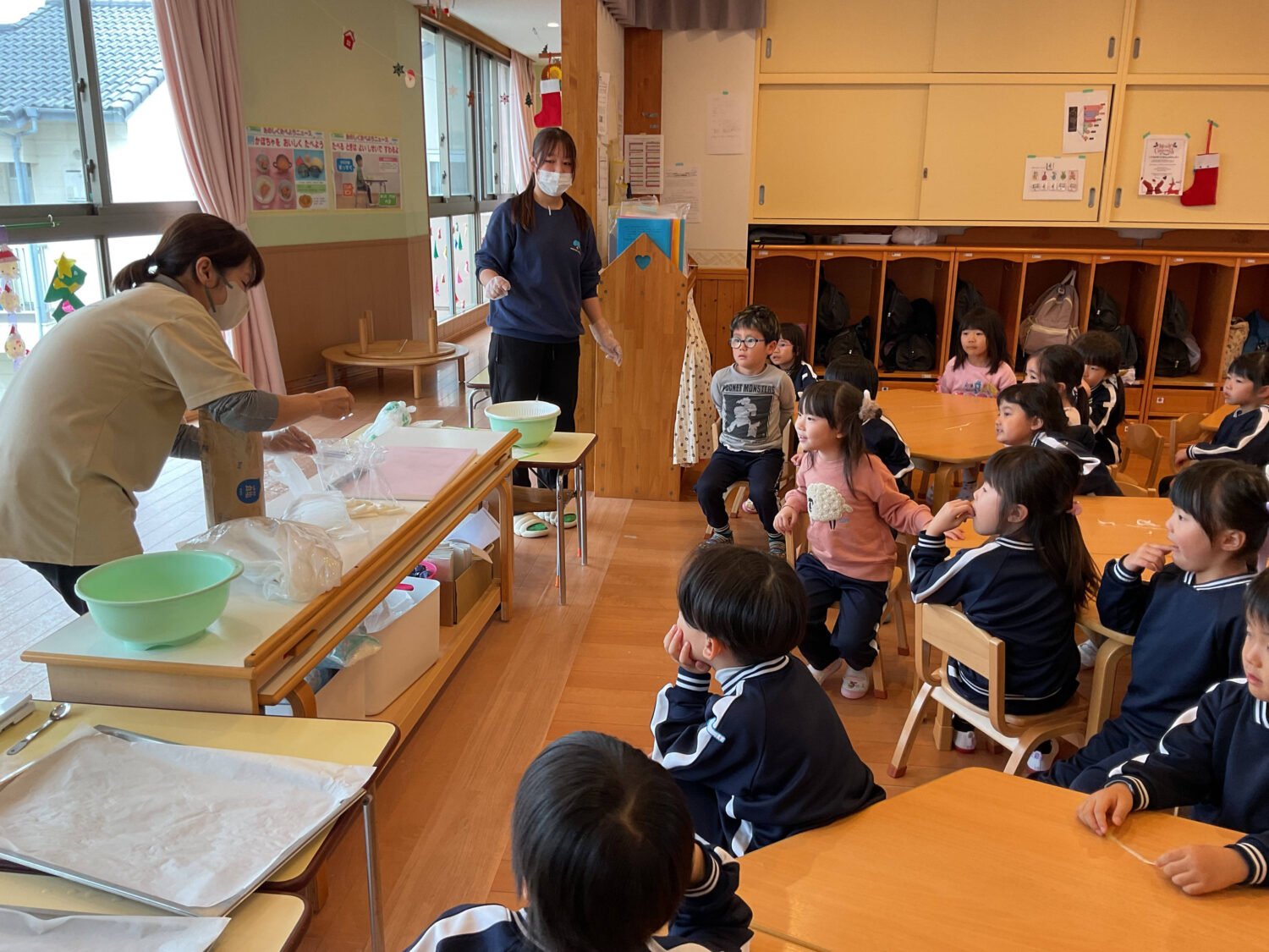「はい、よーいよいっ🎶」と楽しい掛け声と一緒に捏ねてくれるお友達。
