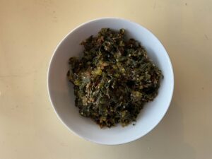 まずは火曜日に、給食の先生にお願いして、大根の葉を使ったふりかけを作ってもらいました。