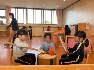杵が当たらないように気をつけたり、工夫しながら遊んでいました😊