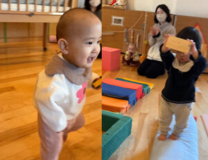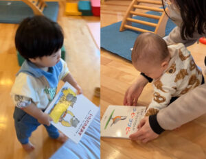 絵本を見ていると、”こんな本もあるよ”とでも言うかのように近寄ってくる子もいて、少しずつ周囲の環境に興味を示すようになったようです。