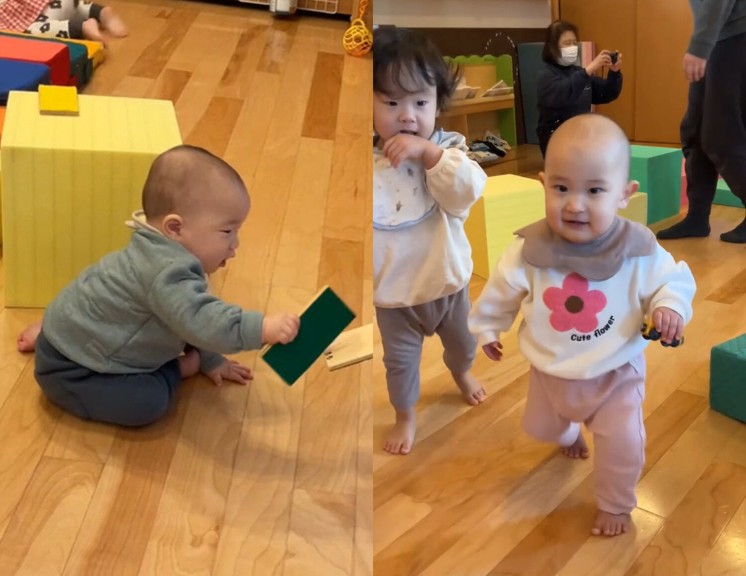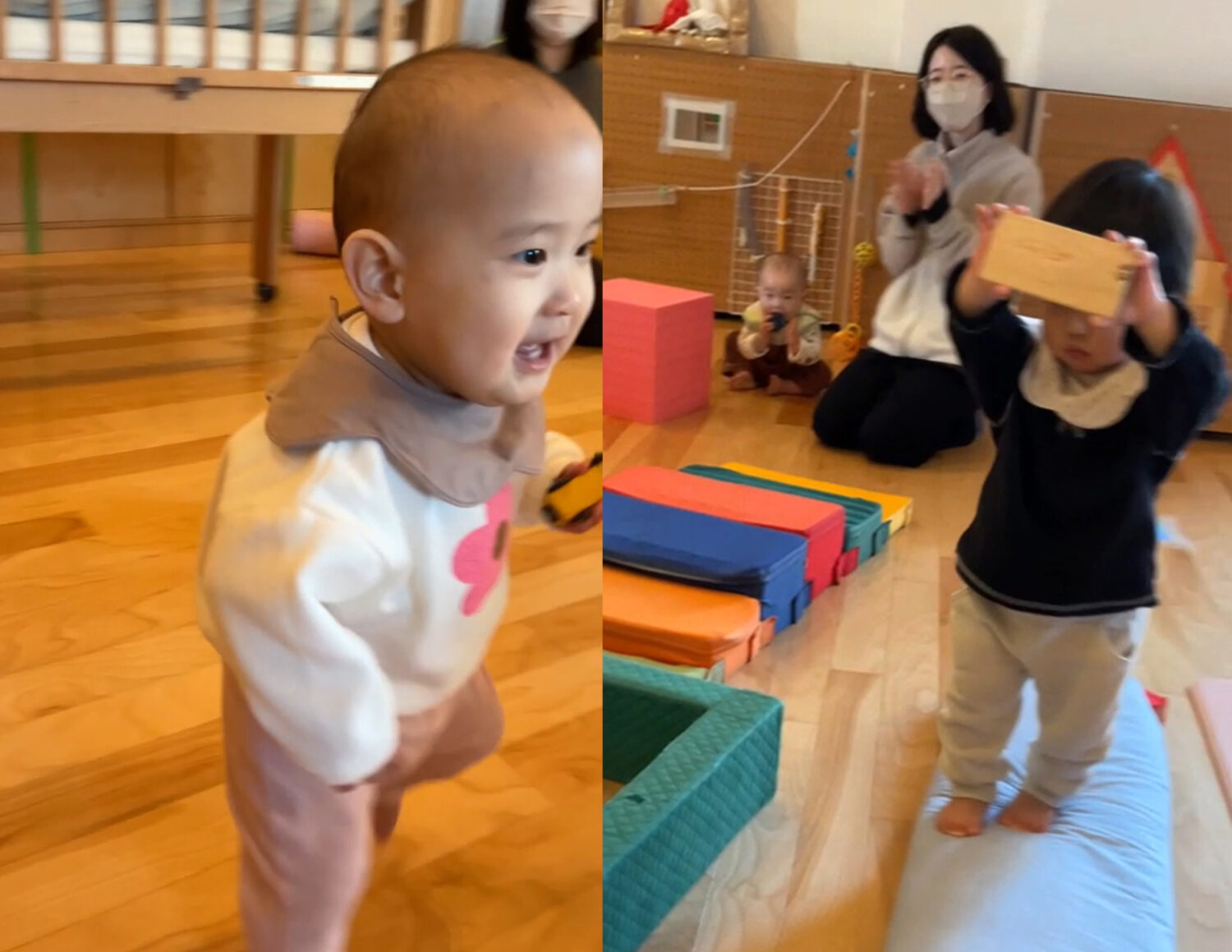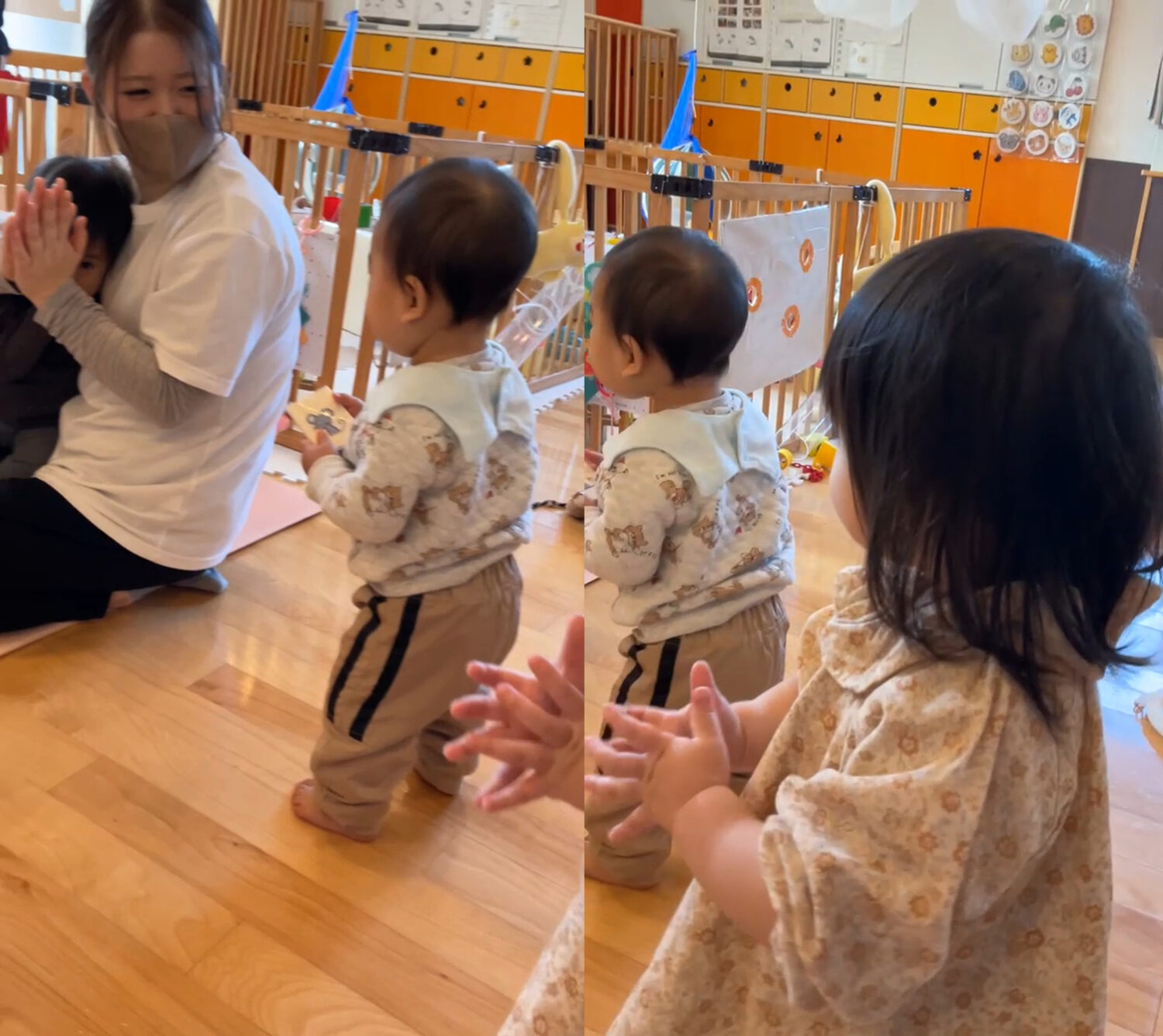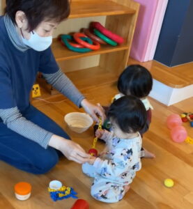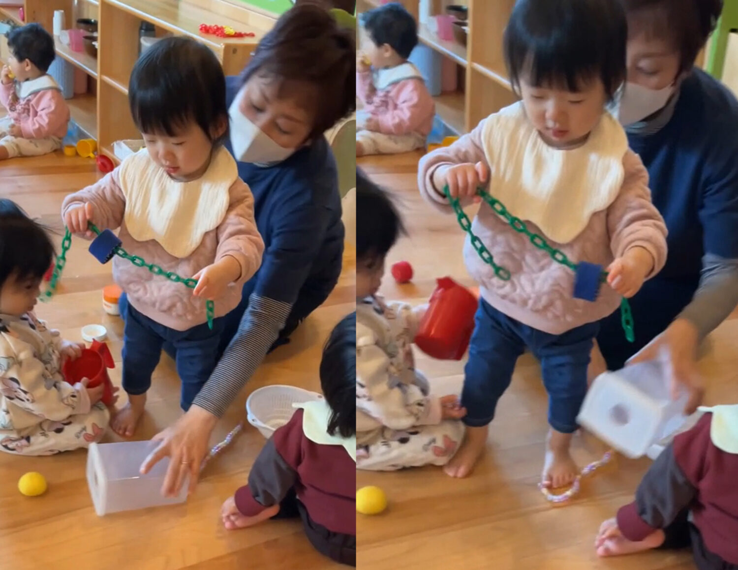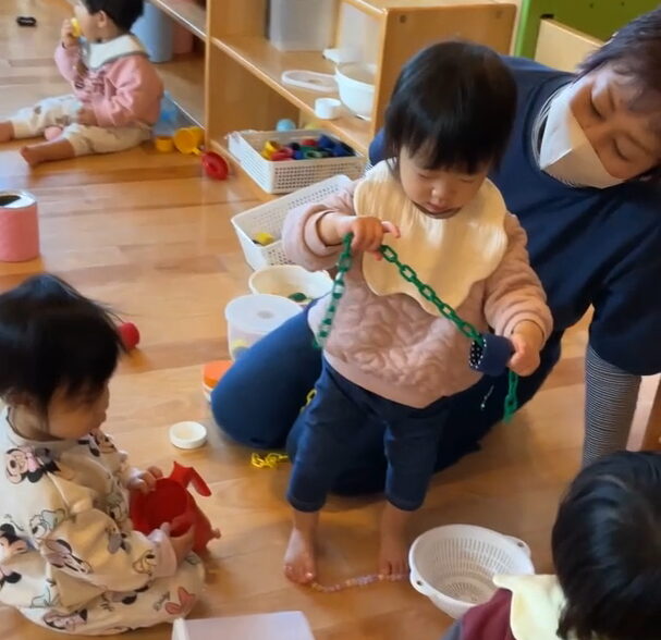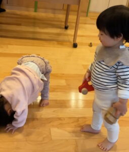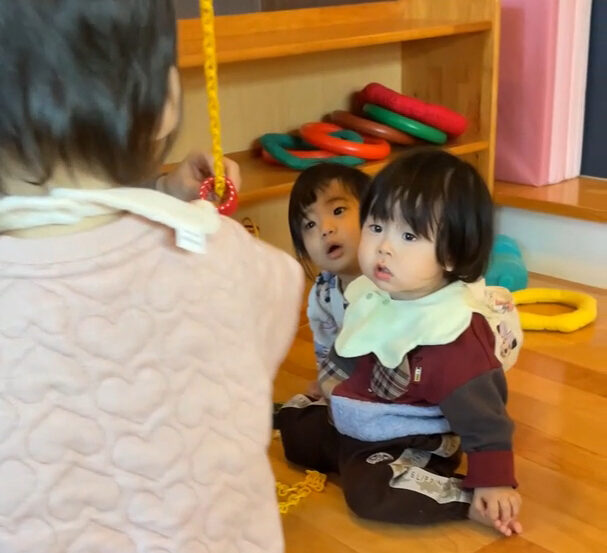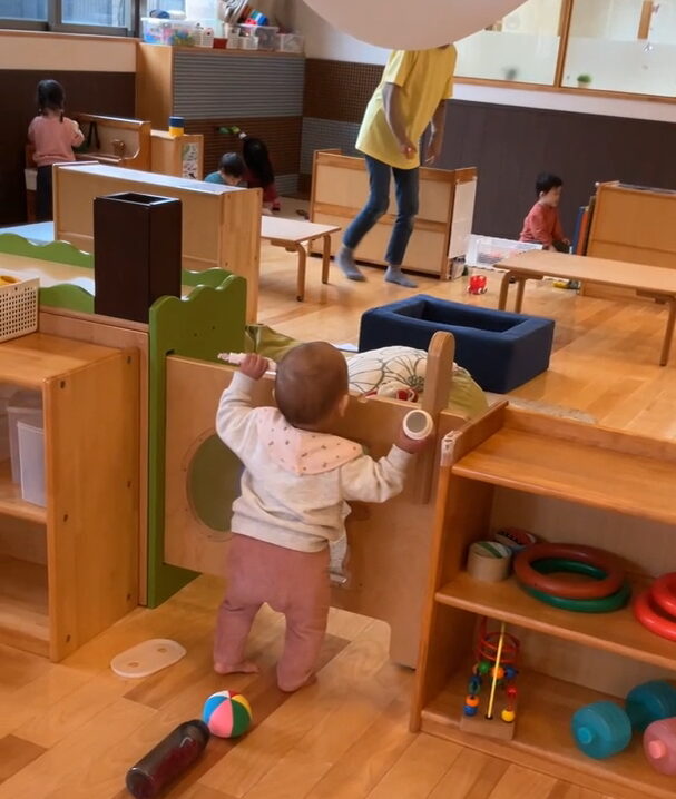 こちらの新人さんは、早くもお隣に広がるたんぽぽ組のお部屋にも興味を示していましたよ。😊✨