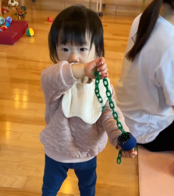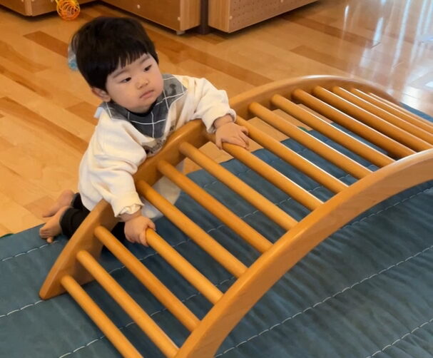 お友だちが遊んでいる遊具にも興味を示していました。😄