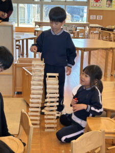 反対側では、組み方を変えて真剣に取り組む子…など思い思いに楽しんでいました😊
