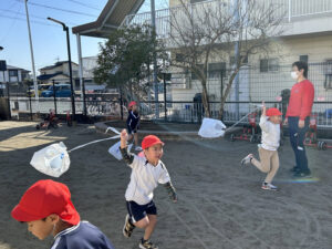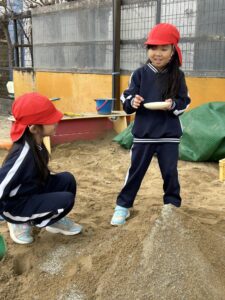園庭のあちこちで、協力しながら取り組む子ども達の姿がありました!