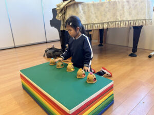 ユニークな形をしたベルや鉄琴に触れながら、音を出して楽しんだ時間でした( ^ω^ )
