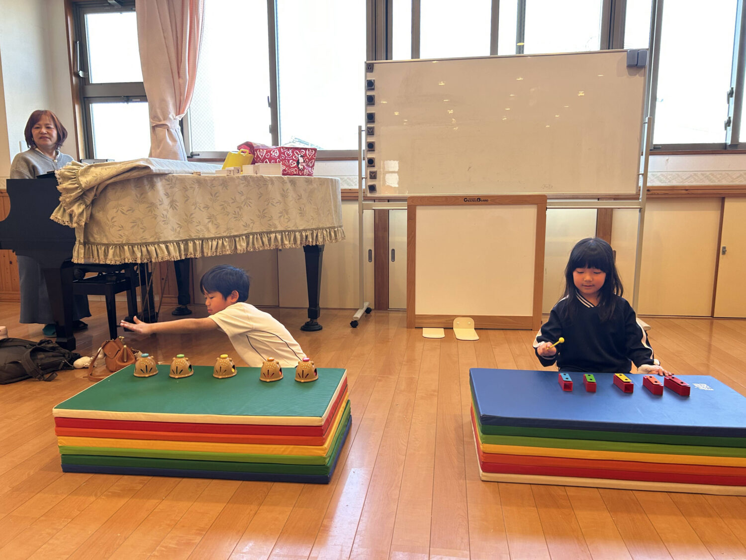 楽器を使って、”のぼりましょ(どれみふぁそ)”を弾きました!