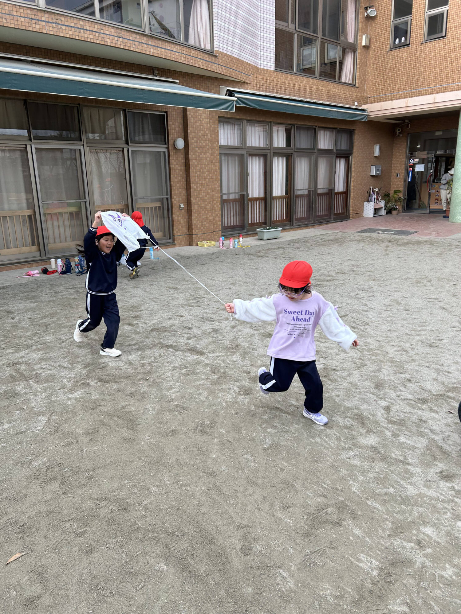 👧「私の凧かしてあげる!走っていいよ!」