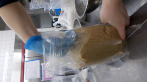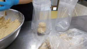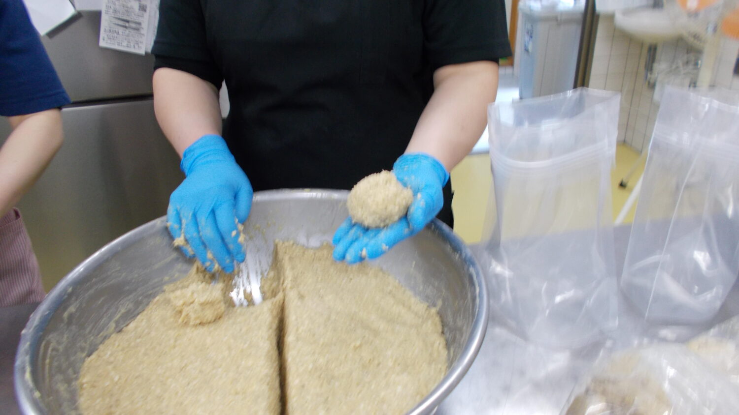 混ぜ終わったら味噌の空気を抜きながら味噌玉を作りどんどん袋につめていきます。